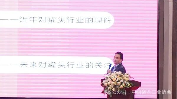 随后,国家工信部消费品工业司食品处处长纵瑞龙发表了视频致辞。纵处长高度肯定了罐头产业在国民经济发展中的重要地位,并指出当前行业面临的新形势和新挑战。他强调,要坚持以创新驱动发展,加强技术创新和品牌建设,推动罐头产业向高端化、智能化、绿色化方向转型,实现高质量发展。