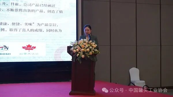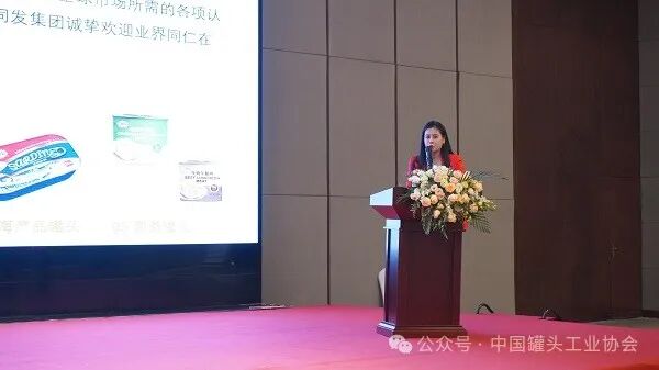 在特邀企业分享环节,福建同发食品集团有限公司事业部总经理李慧仪分享了《乘势而上,创新驱动:企业发展与产品升级之路》的经验,介绍了同发集团在创新与发展方面的实践。诸城市金鼎食品机械有限公司销售总监张方圆则做了《罐头行业的新机遇与挑战:诸城金鼎的创新应对策略》的分享,介绍了金鼎企业在应对行业变化中的创新举措。