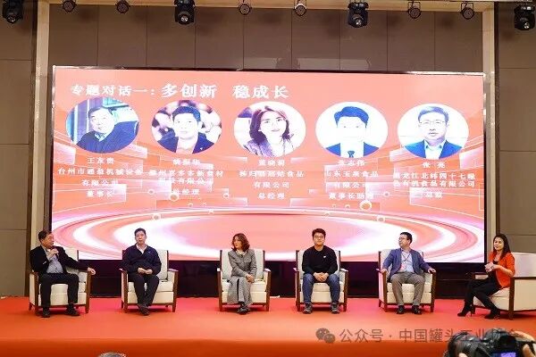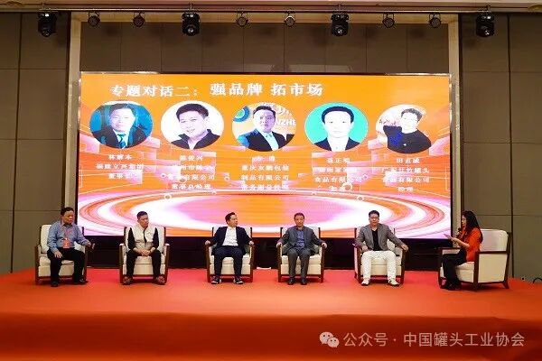 年会还设置了两个专题对话环节。在“多创新、稳成长”专题对话中,来自通益机械、喜多多、屈姑食品、玉泉食品和北纬四十七的与会嘉宾就如何推动罐头行业的创新发展与稳定增长进行了深入探讨;在“强品牌、拓市场”专题对话中,来自立兴集团、陈字贸易、友鹏包装、家家红和甘竹罐头的嘉宾们则围绕品牌建设与市场拓展等议题展开了热烈讨论。