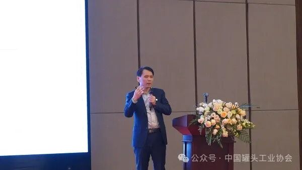 人民日报社《民生周刊》杂志社执行副总编辑陈文波做了《民生价值与社会责任:从媒体视角看罐头行业》的报告。他首先介绍了罐头的发展脉络,也就是曾经媒体对罐头行业的认知情况;接着阐释了罐头行业的民生价值,也是从媒体视角看近年对罐头行业的理解;最后强调了罐头行业的社会责任,即包括媒体在内的多方视角未来对罐头行业的关注。他的报告有助于企业从一个新的角度来重新看待自己的行业,给企业形象管理和ESG等都提供了很好的借鉴和思路。